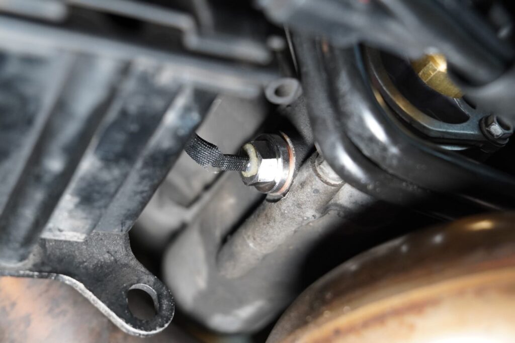 Zusätzlich wurde ein Ringstutzen mit Stahlflex Schlauch installiert, der eine flexible Positionierung des Öldrucksensors ermöglicht.